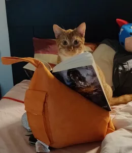 Meet our tabby cat. The geeks among you could probably guess where his name comes from. Of course, it’s in reference to ‘Goose the Cat’ from ‘Captain Marvel’. This house tiger prefers to stay as close to Jen as possible but likes to ask for hugs when I am reading. That’s why he frequently appears on my socials.